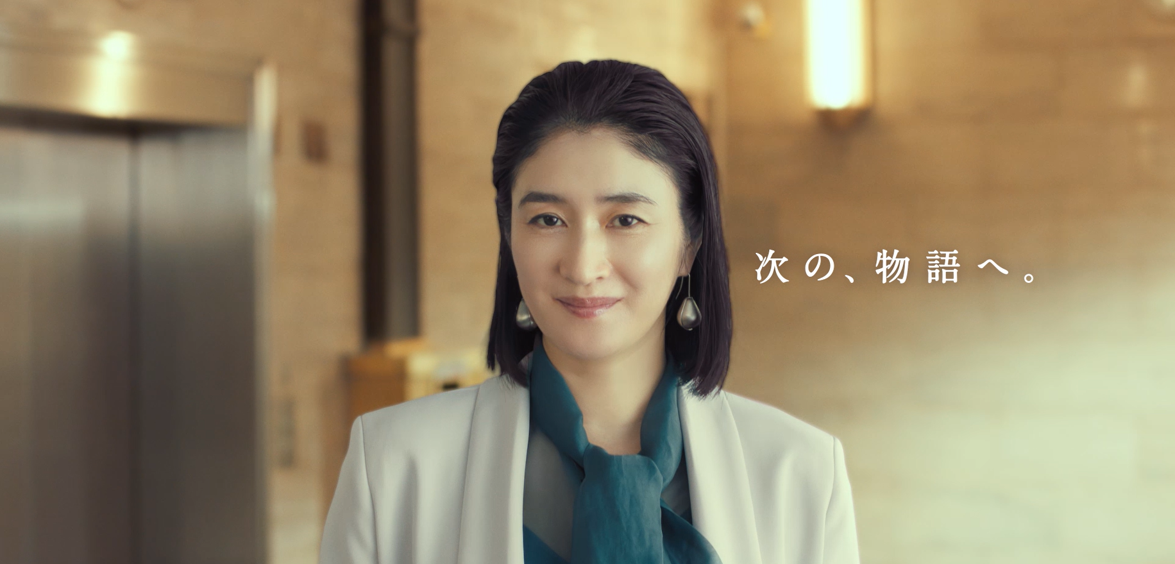 今回のCMでは、小雪さんが「着物」「モダンな洋装」「現代的なスーツ」へと衣装を変えていきます。