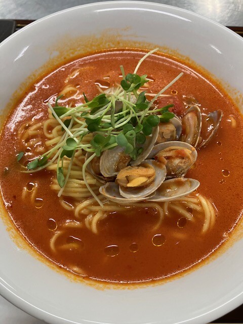 洋食料理人が作る、ピリ辛!アサリのトマトラーメン(ミニライス付)