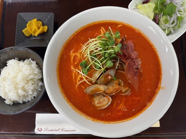 洋食料理人が作る、ピリ辛!アサリのトマトラーメン(ミニライス付)